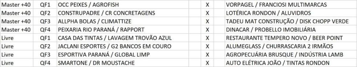 Com estes resultados, foram definidos os confrontos das quartas de final de ambas as categorias.