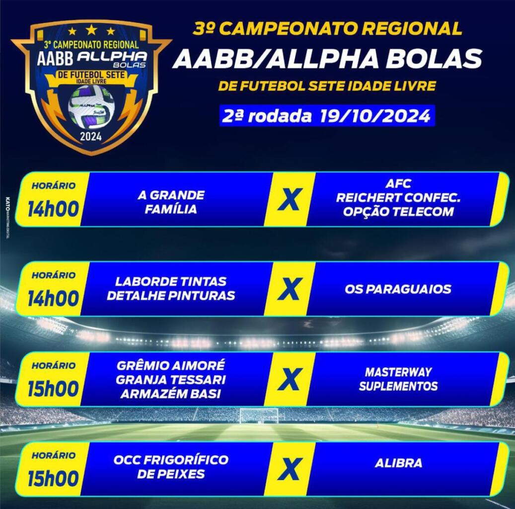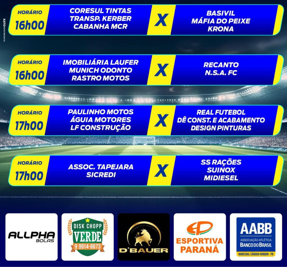 Terá sequência neste sábado (19), com a realização da 2ª rodada da 1ª fase, o 3º Campeonato Regional AABB/Allpha Bolas de Futebol Suíço, competição que reúne 16 equipes da região organizada pela Associação Atlética Banco do Brasil de Marechal Cândido Rondon.