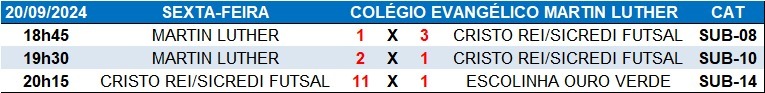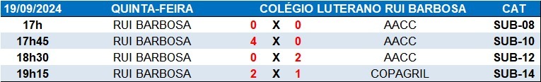 Na quinta-feira (19) o torneio teve início com duelos entre Rui Barbosa e AACC/Copagril, e na sexta-feira (20) teve sequência com os confrontos entre Colégio Martin Luther e Cristo Rei, além da Escolinha Ouro Verde, que disputa apenas a categoria sub-14.