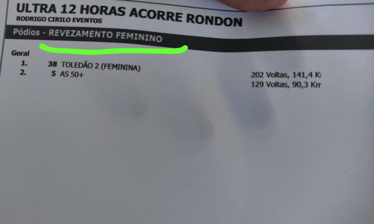 Organizada pela Acorre Rondon, a 3ª Ultra 12 Horas recebeu o apoio da prefeitura, por meio da Secretaria Municipal de Esporte e Lazer, além dos patrocínios de empresas.