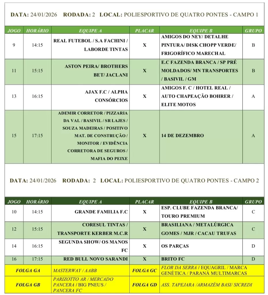 Confira a programação da 2ª rodada: