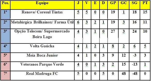 A quarta vaga será disputada por Volta Gaúcha, Meia Boca Junior e Veteranos Parque Verde. O Real Madruga FC não tem mais possibilidades de avançar.