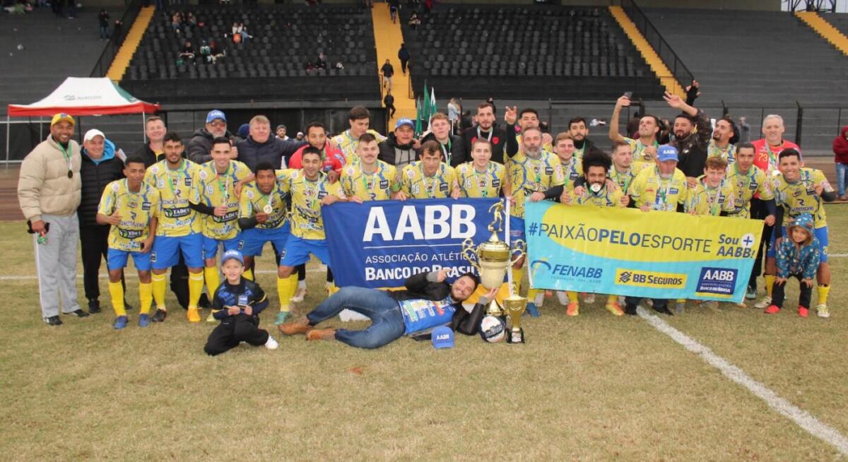 A seca de títulos acabou. Após 12 anos, a AABB voltou a soltar o grito de campeão no Municipal de Futebol Amador de Marechal Rondon. Neste domingo (14), a equipe comandada pelo técnico Zé Maria derrotou a Design Pinturas/ Bom Jardim/ Coresul/ Laborde Tintas 4 a 3, diante de um ótimo público que encarou o frio de 10ºC para prestigiar a primeira final estádio Valdir Schneider desde 2017.