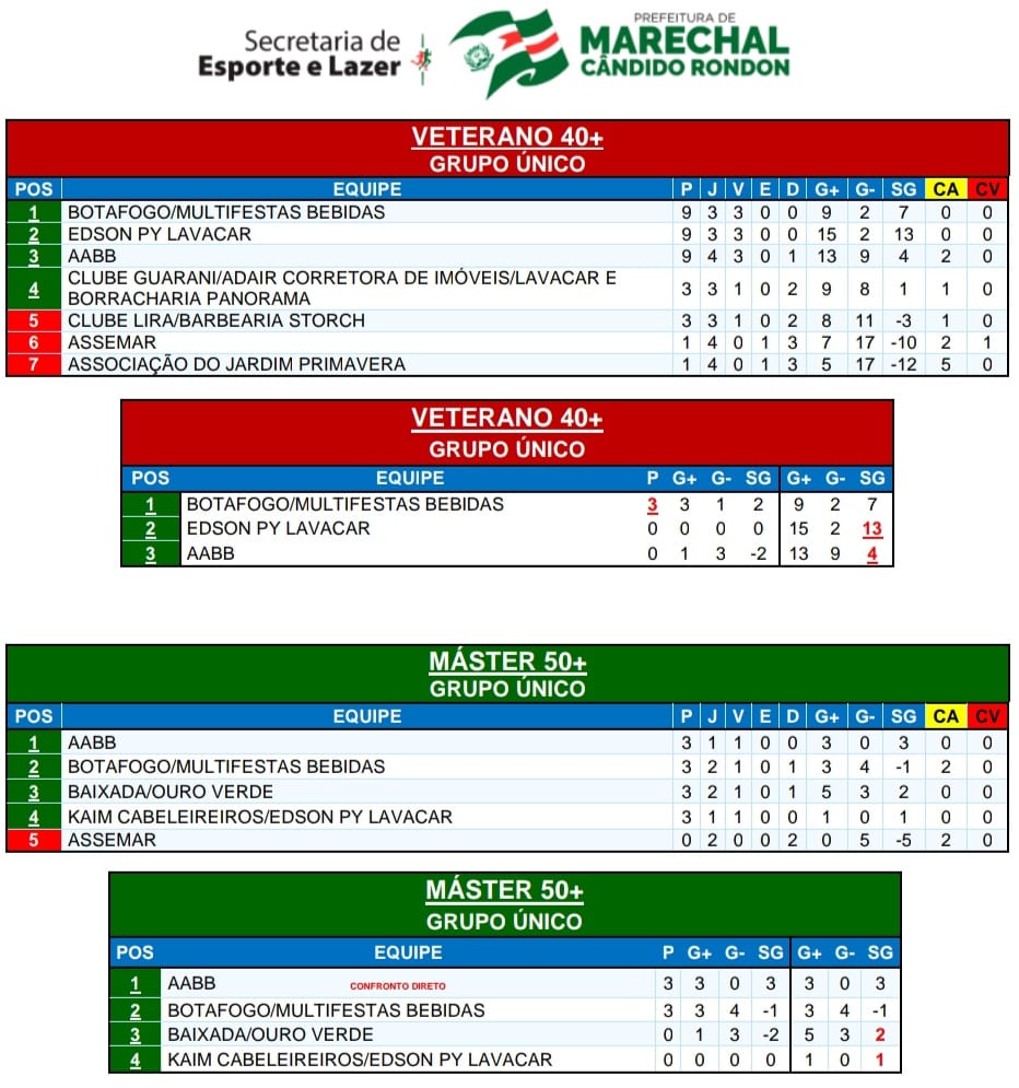 Na Assemar, pela categoria Máster (50+), a AABB fez sua estreia com vitória por 3 a 0 sobre o Botafogo/Multifestas Bebidas, com gols de Alberto Lausch, Sandro Bregoli e Valter. Em seguida, a Baixada/Ouro Verde, com gols de Ereneu (2), Osmarzinho e Xoxa, goleou a Assemar por 4 a 0 e também somou seus primeiros pontos no Municipal.