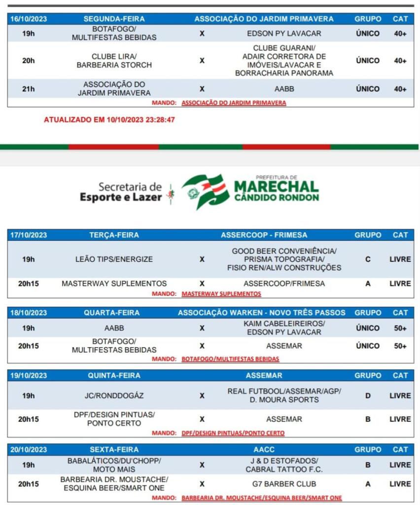 O Campeonato Municipal de Futebol Suíço 2023, organizado pela Secretaria de Esporte e Lazer de Marechal Cândido Rondon, teve sequência na última quarta-feira (11) com a realização de cinco partidas.