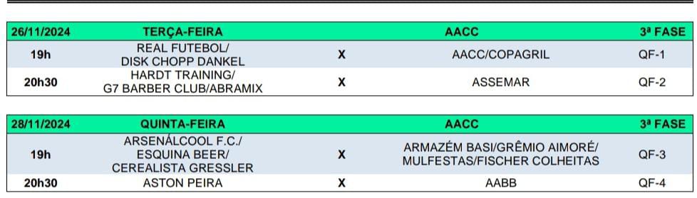 Na próxima semana, o Municipal prossegue com rodadas das quartas de final na terça (26) e quinta-feira (28), ambas no campo da AACC.