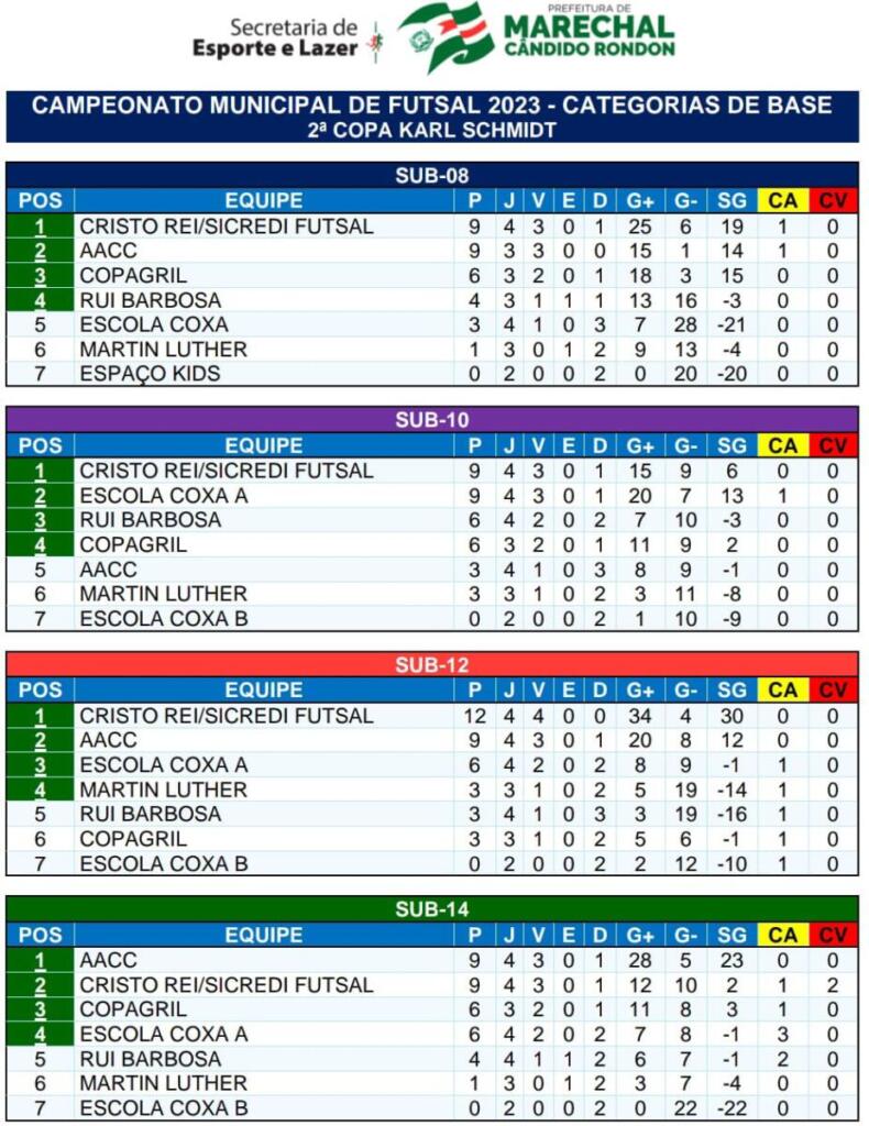Oito partidas movimentaram nesta quarta-feira (27) a fase de classificação da 2ª Copa Karl Schmidt de Futsal Categorias Menores, competição promovida pela Secretaria de Esporte e Lazer de Marechal Cândido Rondon.