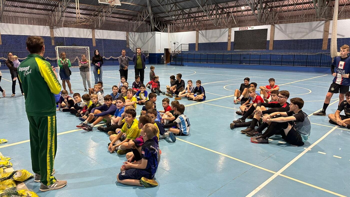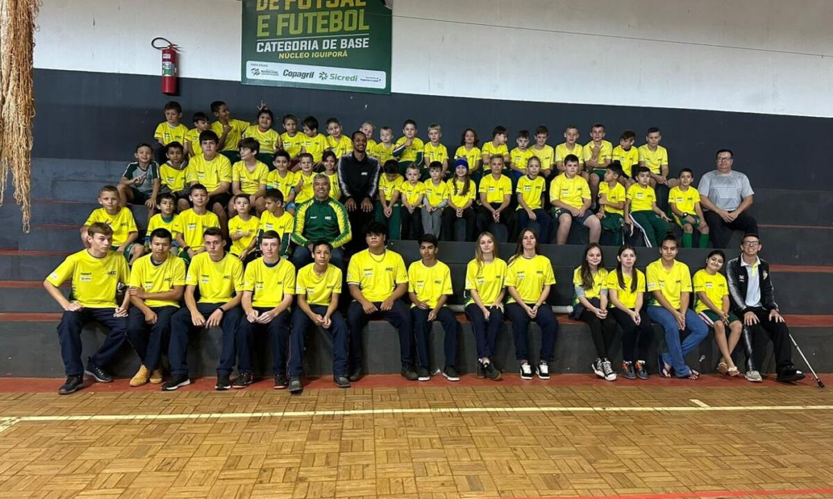 Alunos das escolinhas de futsal da AACC dos núcleos da Vila Gaúcha e distrito de Iguiporã receberam nesta semana o kit de treinamentos, contando com camiseta, calção e meião. A entrega foi feita para dezenas de crianças e adolescentes que participam regularmente das atividades.