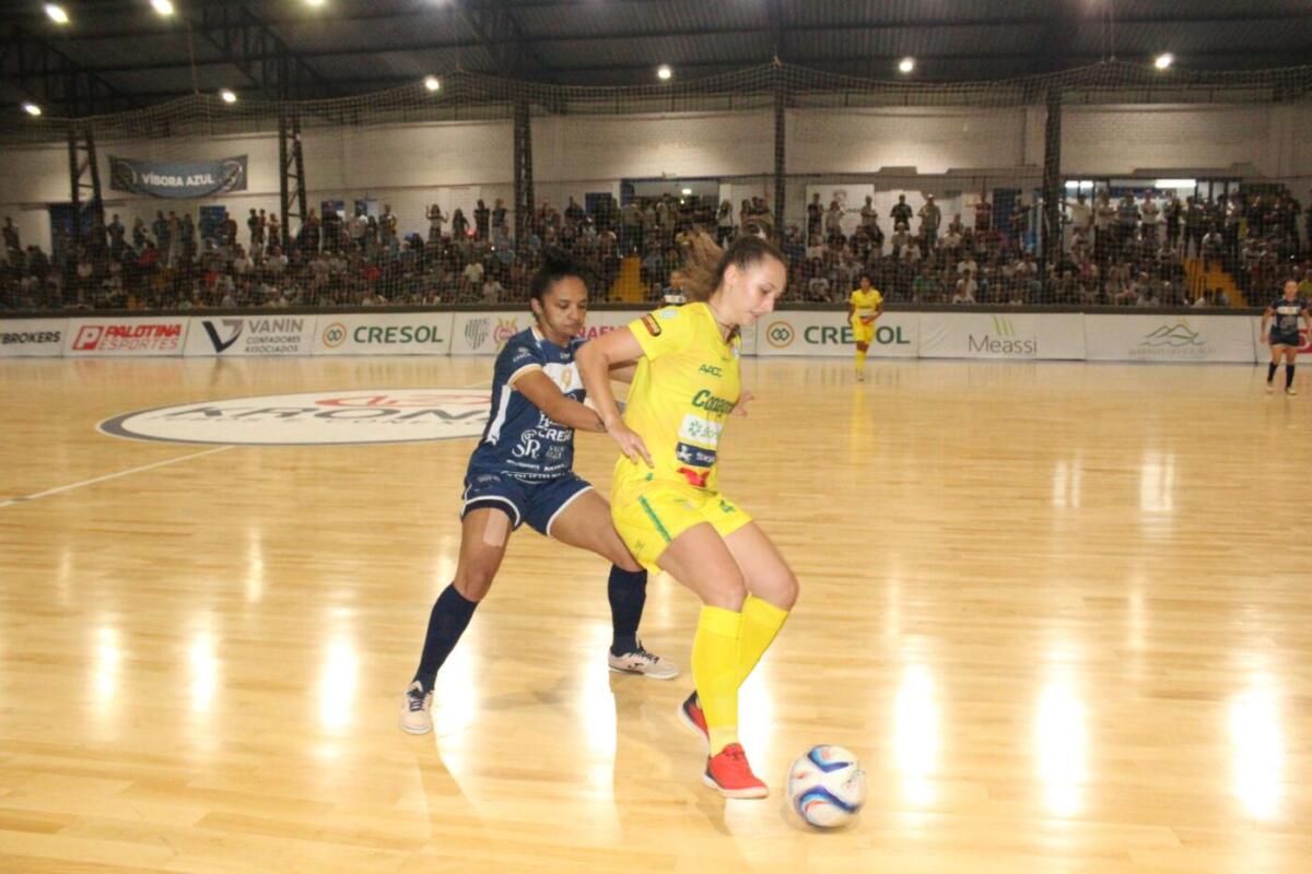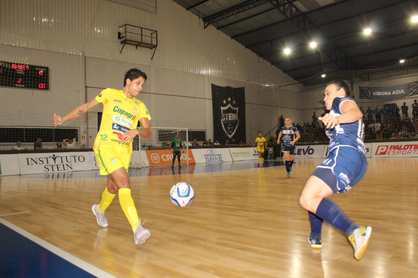 O ginásio da Neva, em Cascavel, recebeu nesta terça-feira (3) o primeiro jogo da decisão da Série Ouro do Campeonato Paranaense de Futsal Feminino. Diante do atual campeão Stein Futsal, a AACC Copagril/Prefeitura de Marechal Cândido Rondon fez um jogo de muita luta e determinação, mas acabou derrotada por 2 a 1.
