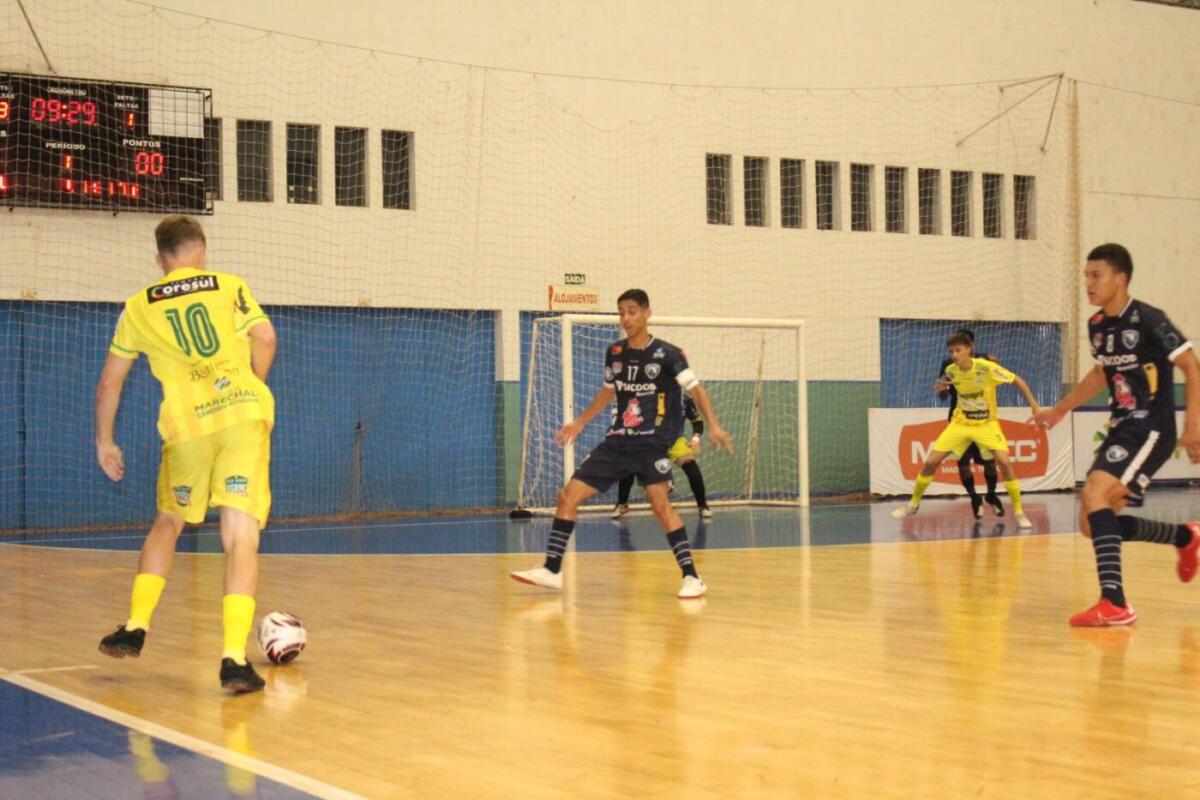 Em seu quinto compromisso na 1ª fase do Campeonato Paranaense Sub-20 de Futsal, a AACC Copagril/Prefeitura de Marechal Cândido Rondon venceu o Guibon Foods/Tapejara Futsal por 3 a 0, neste sábado (27), no Ginásio Ney Braga, e conquistou sua primeira vitória no Grupo C da competição.