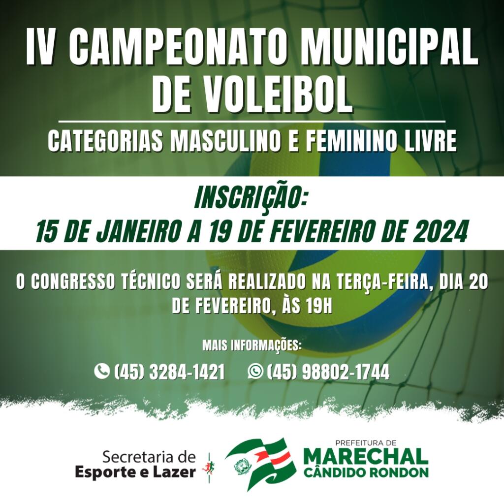 A Secretaria de Esporte e Lazer da prefeitura de Marechal Cândido Rondon abriu as inscrições para o 4º Campeonato Municipal de Voleibol, nas categorias masculino e feminino livre.