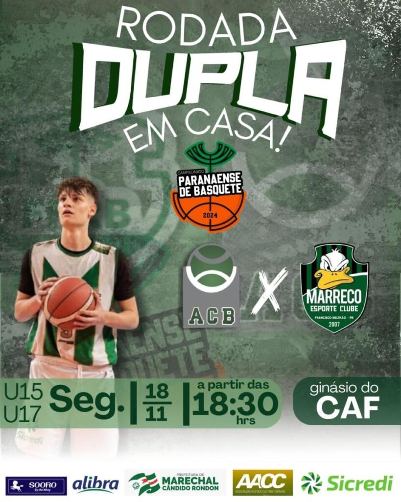 A partir das 18h30, a Prefeitura de Marechal Rondon/AACC/Associação Crescendo com o Basquete recebe o Marreco, de Francisco Beltrão, pela categoria sub-15. Logo após, será a vez da categoria sub-17 de ambas as equipes entrarem em ação.
