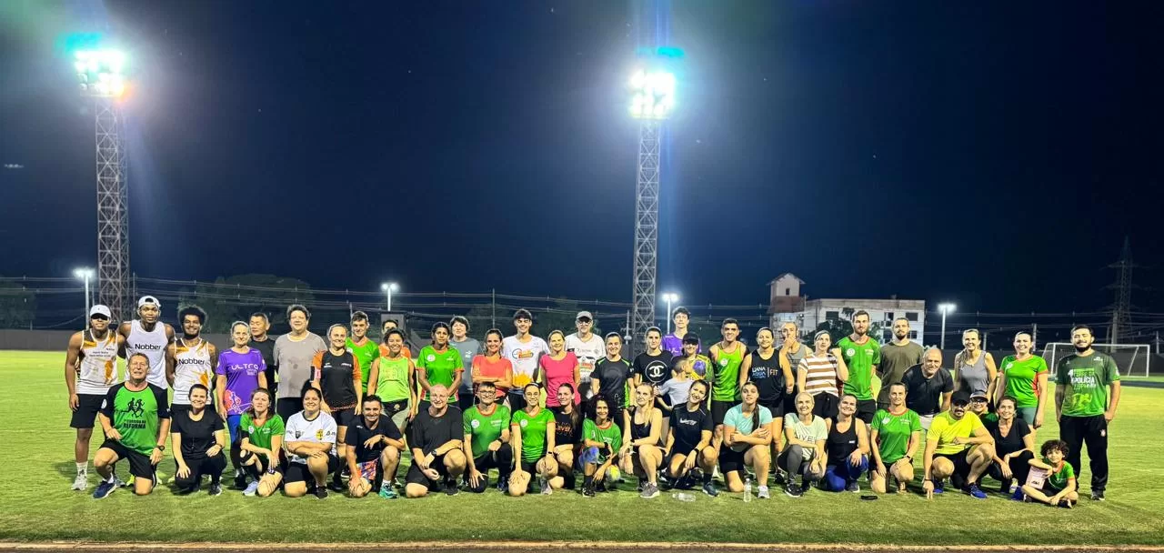 Para participar, os inscritos fizeram uma doação de uma bandeja de ovos, que foi arrecadada como forma de contribuir com o Asilo Lar Rosas Unidas. O treino incluiu atividades variadas, como exercícios de alongamento, caminhada e corrida, além de um refrescante coquetel de hidratação com água e frutas, promovendo saúde e bem-estar para todos os presentes.