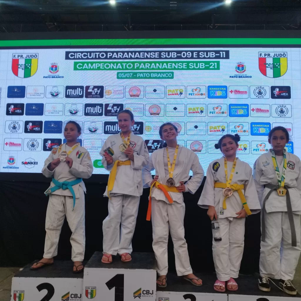 Crianças que integram o Projeto de Judô no contraturno da Escola Municipal Osvino Weirich, no bairro Higienópolis, de Marechal Rondon, estiveram no município de Pato Branco no último sábado (5), para a disputa do Circuito Paranaense sub-09 e sub-11, e conquistaram excelentes resultados.