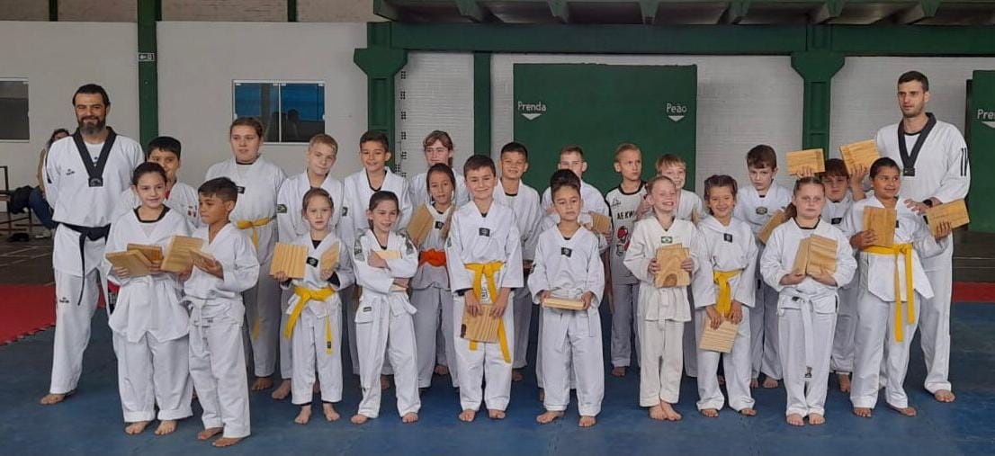 A troca de graduação foi realizada pelo Mestre Alencar e Mestre Eduardo, e contou com a presença do secretário de Esportes, Diogo Schneider (Bolha), e da conselheira fiscal Sirlei, além dos alunos auxiliares Vitor Hugo, Vinícius e Calebe.