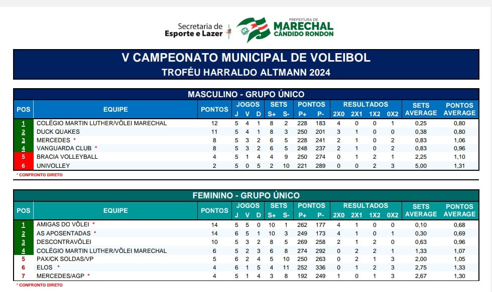 A 1ª fase será finalizada na terça-feira (23), com os duelos entre Mercedes/AGP e Colégio Martin Luther/Vôlei Marechal, às 19h45, e Amigas do Vôlei e Descontravôlei, às 20h45.