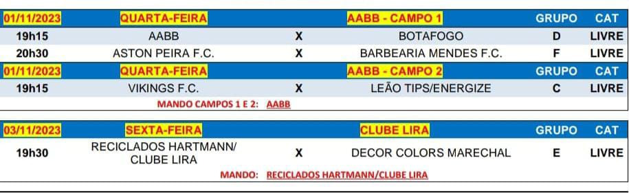 Duas partidas atrasadas movimentaram nesta terça-feira (31), na AABB, a fase de classificação da categoria Livre do Campeonato Municipal de Futebol Suíço 2023, organizado pela Secretaria de Esporte e Lazer de Marechal Cândido Rondon.