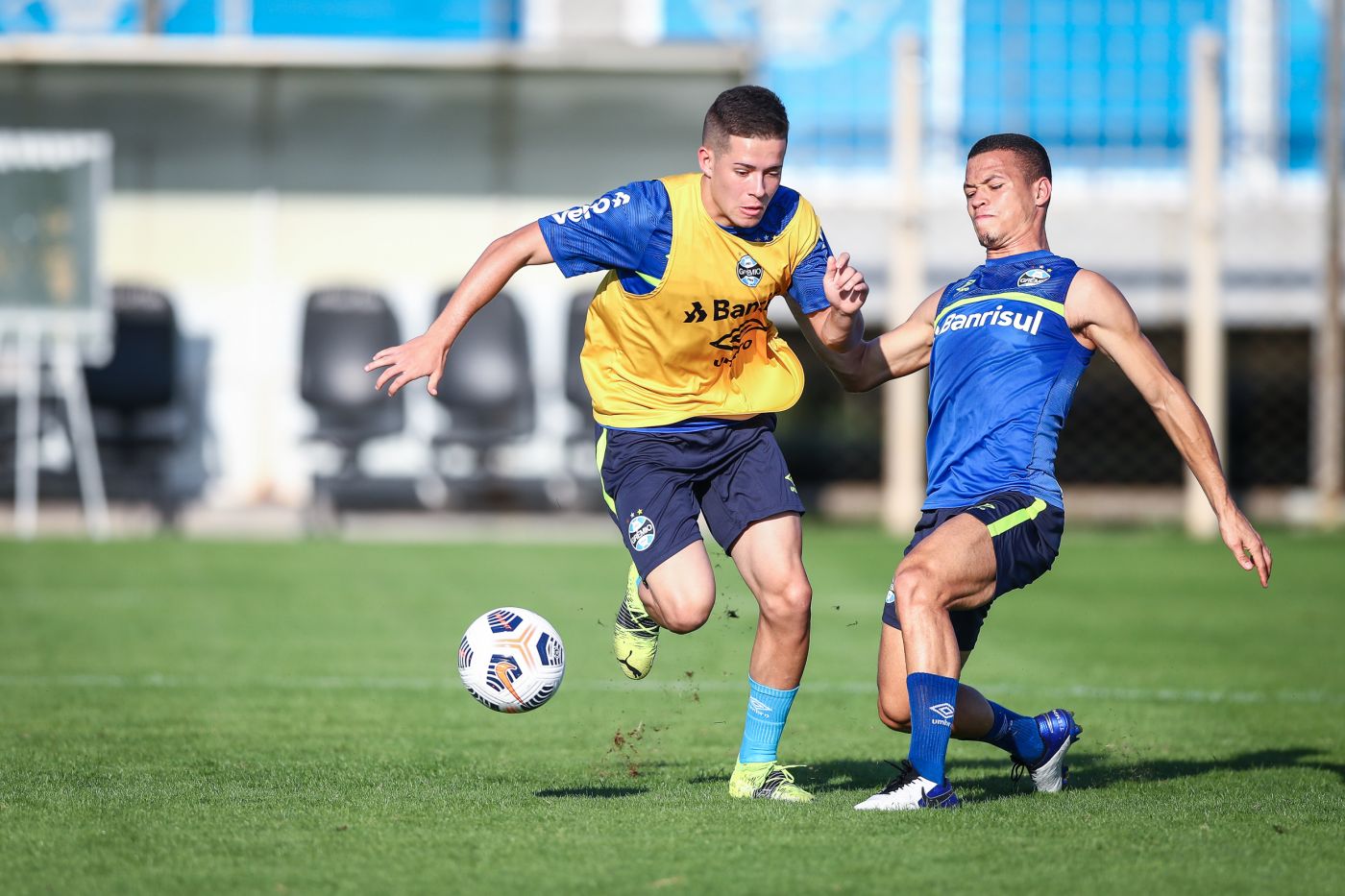 O treinamento no CT Luiz Carvalho começou com trabalho comandado pelo preparador físico Reverson Pimentel para aquecimento e condicionamento dos atletas que participaram do jogo em Caxias do Sul. A atividade com bola em campo pode movimentar os jogadores e estabelecer uma adaptação gradual para um esforço mais focado.
