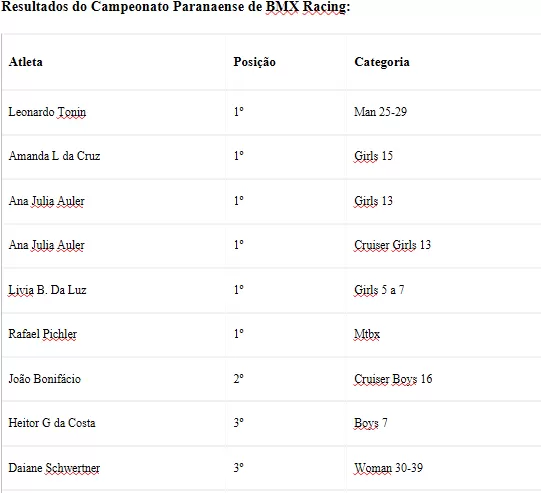 Resultados da Taça Brasil de BMX Racing: