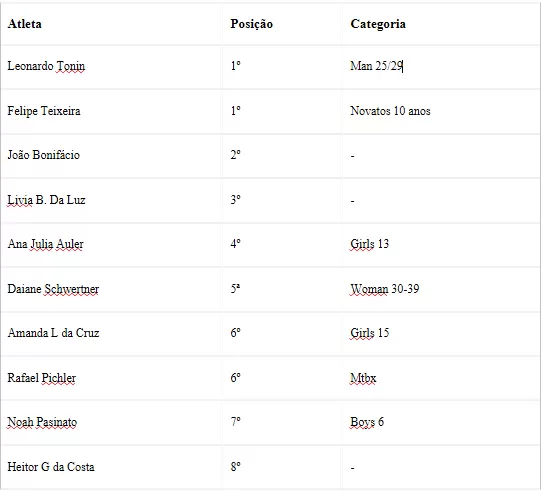 Confira os resultados dos nossos campeões: