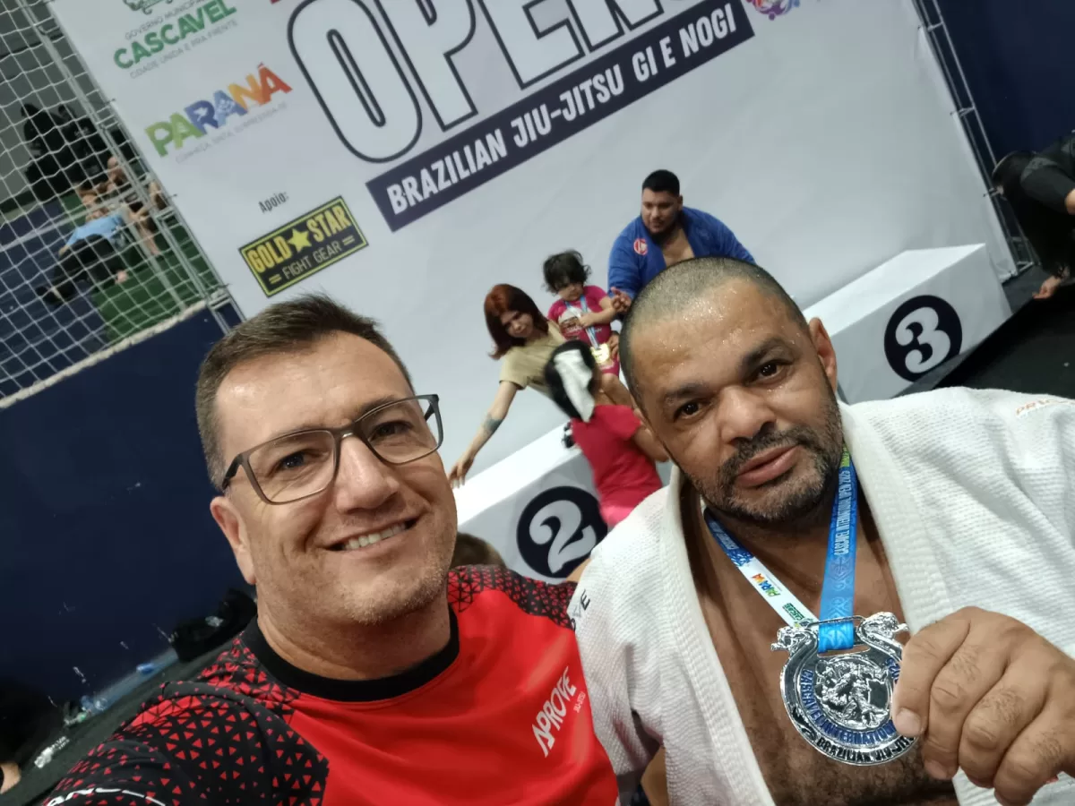 Ronaldo Carlos Gonçalves, de 49 anos, atleta da equipe APROVE Jiu-Jitsu Paradesportivo, subiu ao segundo lugar do pódio em sua categoria, trazendo mais uma conquista importante para o projeto social de Marechal Cândido Rondon. O atleta foi acompanhado por Carlos Alberto Ferreira de Lima Filho, de 31 anos, da equipe Cícero Costa, que também representou a cidade na competição.