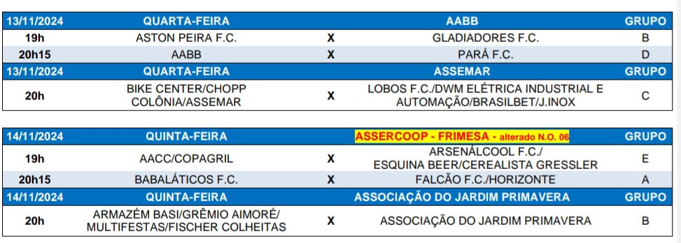 Teve sequência nesta terça-feira (12), no campo da Assercoop/Frimesa, a 1ª fase do Campeonato Municipal de Futebol Suíço Livre, organizado pela Secretaria de Esportes e Lazer de Marechal Cândido Rondon.