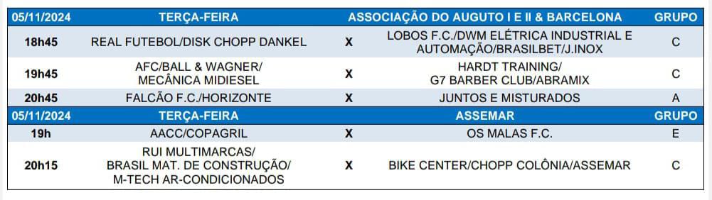 Na preliminar, pelo Grupo A, o Amigos do Nei/Detalhe Pinturas derrotou a Associação Linha Heidrich por 3 a 1, com gols de Alemão, Douglinhas e Kelvin, e chegou a 10 pontos, disparado na liderança da chave. Igor Maluco descontou para a Linha Heidrich, que segue isolado na vice-liderança com seis pontos.