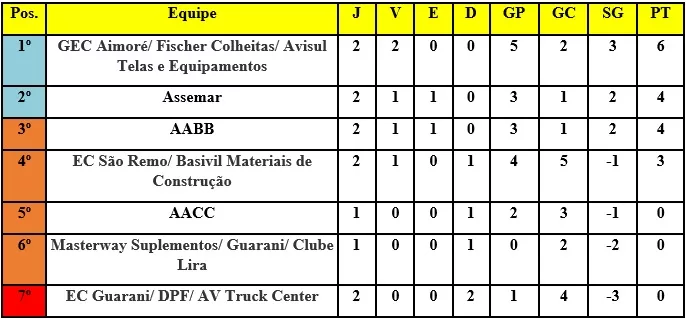 Já na Linha São Cristóvão, o GEC Aimoré/Fischer Colheitas/Avisul Telas e Equipamentos tenta manter a liderança diante da AACC. A AABB folga na rodada.