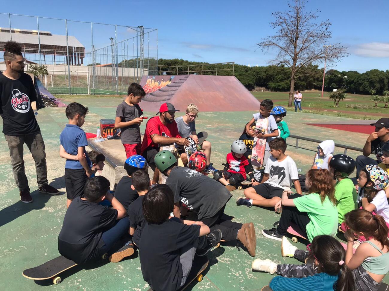 A Escolinha de Skate possui 10 skates que terão o uso compartilhado durante as aulas para as/os participantes que não o possuem. As vagas são garantida por ordem de chegada no primeiro dia, sendo um dos critérios de garantia da vaga a presença na aula.