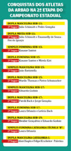 A Arbad agradece a todos que prestigiaram o evento e contribuíram para a realização, atletas, professores e parceiros: Auto Elétrica do João, Indústrias Schumacher, Sicredi, Academia Equilíbrio, Colégios Martin Luther, Cristo Rei, Eron Domingues e Paulo Freire e também as Secretarias de Esportes e Educação.