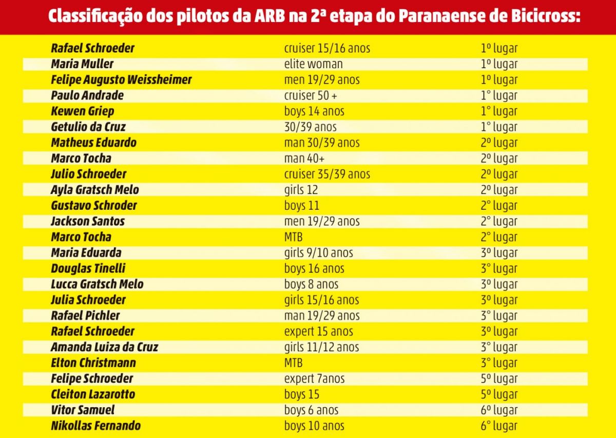 Ele já projeta as duas últimas competições da temporada, ambas em casa. “Agora é manter o foco e treinar forte para essas duas competições, no dia 14 de novembro, quando teremos a Copa Max Mulling, e no dia 05 de dezembro, a etapa final do Paranaense, na qual dependemos de alguns resultados, mas existe a possibilidade da conquista geral por equipes. Agradeço a Secretaria de Esporte e Lazer por todo apoio prestado ao bicicross rondonense”, finaliza.