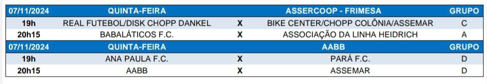 No campo da Associação do Jardim Primavera, o Aston Peira FC goleou os donos da casa por 6 a 2 e disparou na liderança do Grupo B, com nove pontos em três jogos. Eduardo (2), Cristian, Huan, Digo e Andriel anotaram os gols do Aston Peira, enquanto Adriano Ronaldo, duas vezes, descontou para o Primavera.