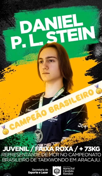 O atleta rondonense Daniel Pedro Lermen Stein se consagrou campeão brasileiro de Taekwondo na categoria Juvenil +73kg, durante o Campeonato Brasileiro de Taekwondo 2025, realizado entre os dias 10 e 14 de setembro em Aracaju (SE).