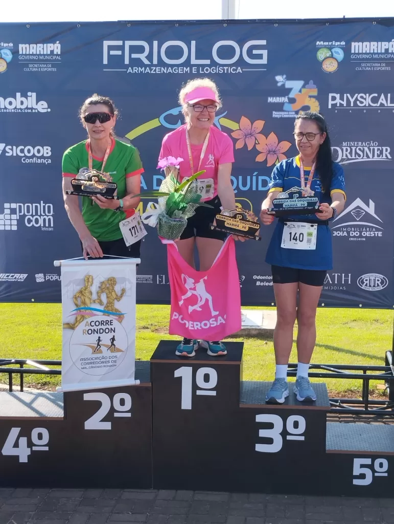 Nos cinco quilômetros 56-65 anos, a corredora Rosane Teresinha Kozerski Kunzler subiu ao Pódio conquistando o 2º Lugar e se destacando novamente como atleta de referência na região.
