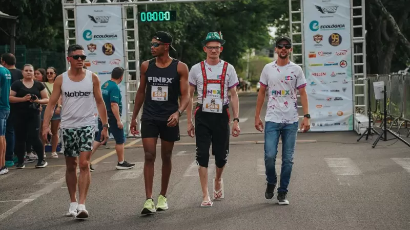 Já Maico Pfeifer, o carismático “Fininho”, garantiu seu espaço de destaque no pelotão intermediário ao completar o percurso em 24 minutos e 11 segundos, conquistando a 10ª colocação em sua categoria, que contou com 58 atletas. Fininho chamou atenção pela irreverência, correu trajado com vestuário germânico e calçando o tradicional Chinelo Finex Quadrado, símbolo de sua marca pessoal e empresarial.