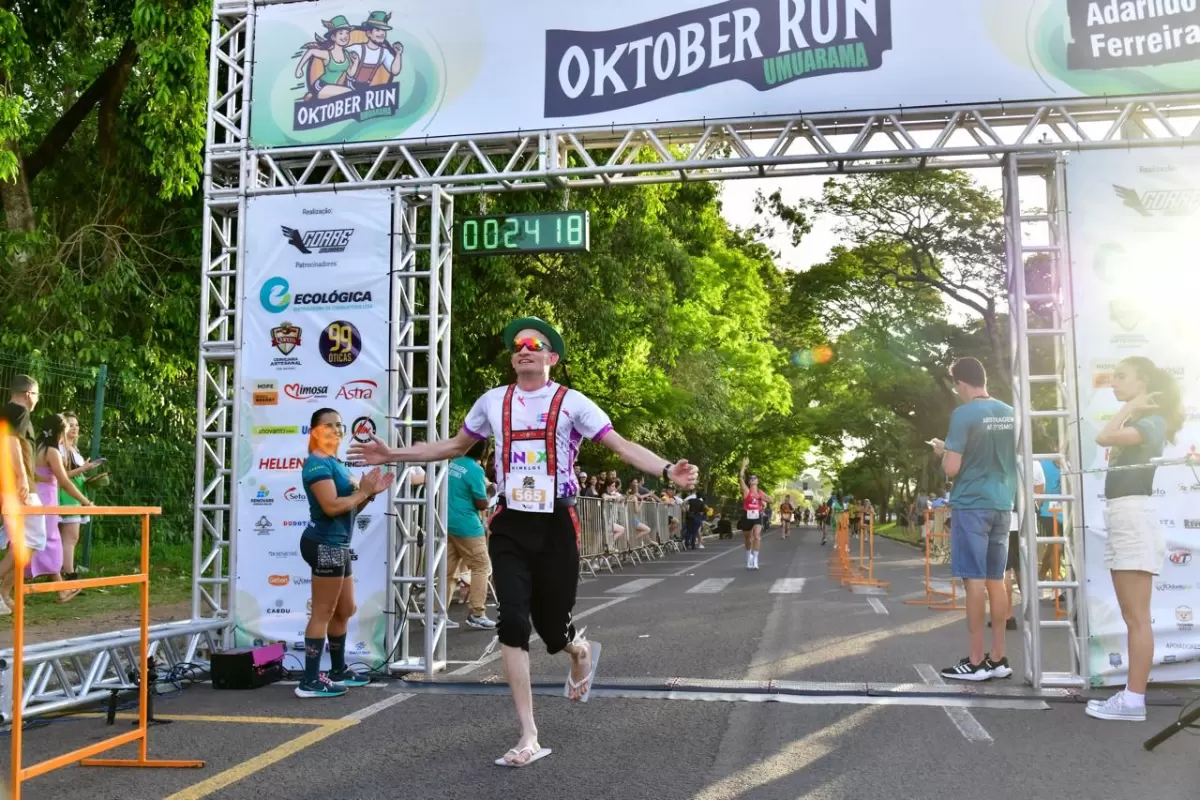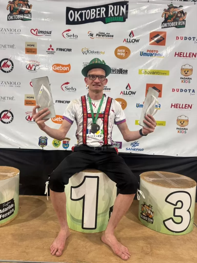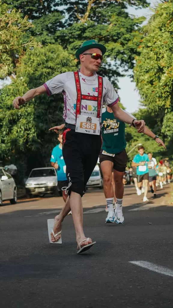 “A ideia era ir a caráter e levar um pouco da cultura alemã para a Oktober Run. E, claro, divulgar o chinelo que produzimos em Marechal Rondon, com um design divertido e diferente”, comentou o atleta, que com seu estilo descontraído esbanjou alegria e conquistou o público.