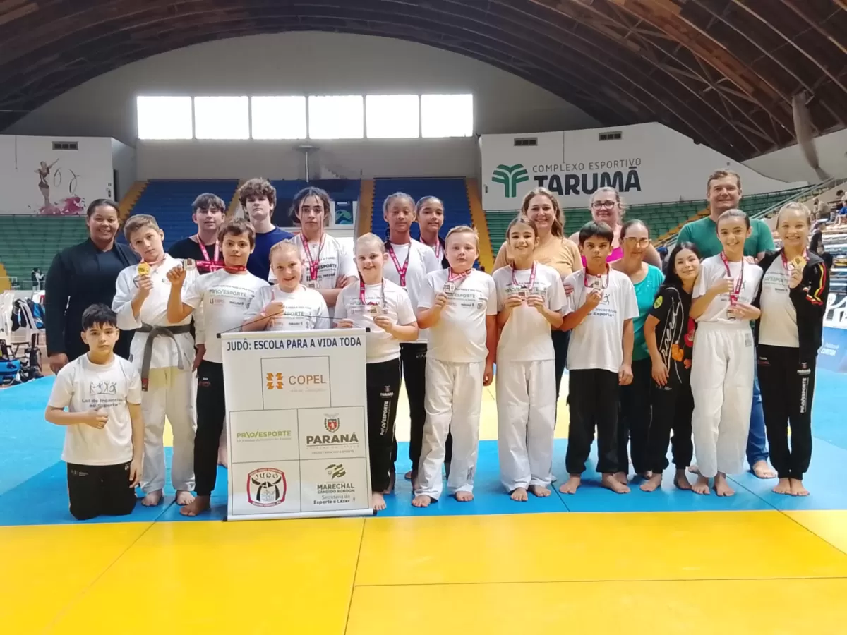 Um fim de semana de conquistas e experiências marcou a participação de crianças atendidas por projetos de judô no contraturno escolar em Marechal Cândido Rondon. Os alunos das escolas municipais Floriano Peixoto, do distrito de Iguiporã, e Osvino Carlos Weirich, do Jardim Higienópolis, estiveram em Curitiba para disputar dois eventos promovidos pela Federação Paranaense de Judô, realizados no ginásio do Tarumã, nos dias 11 e 12.