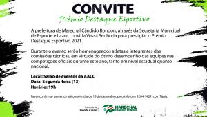Conforme o secretário municipal de Esporte e Lazer, Diogo Schneider, trata-se de uma festa do esporte, uma justa homenagem por todo o trabalho desenvolvido em 2021 pelas equipes, modalidades, comissões técnicas e principalmente pelos atletas que representaram Marechal Rondon nos Jogos Abertos do Paraná (JAPS), da Juventude (JOJUPS), em competições organizadas das federações, entre outras disputas.