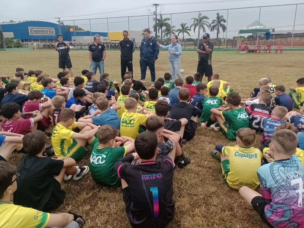 Apesar do tempo instável, dezenas de meninos de 10 a 15 anos, de Marechal Cândido Rondon e diversas cidades da região, como Terra Roxa, Mercedes, Pato Bragado, Nova Santa Rosa e Entre Rios do Oeste, participaram no último sábado (15), no campo da AACC, de uma avaliação com o observador técnico do Grêmio, Ederson Schwingel.