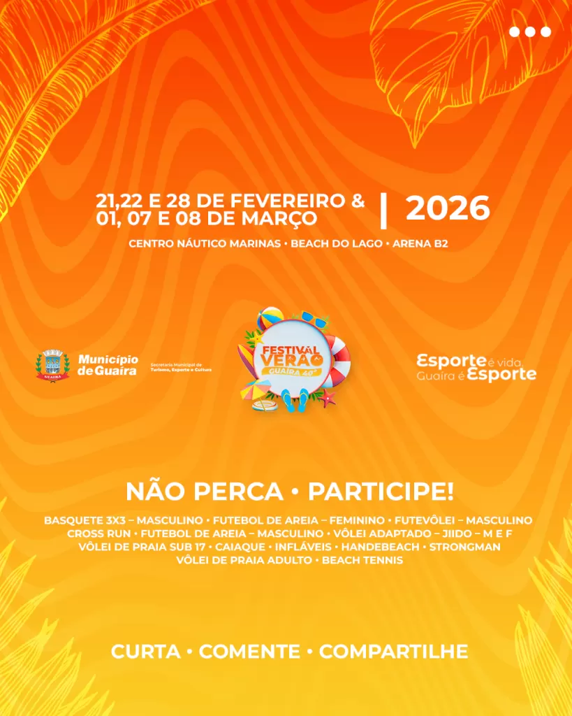 Além da divulgação da arte principal com o calendário completo do festival, o Município de Guaíra prepara materiais complementares com informações detalhadas sobre inscrições, valores e premiações de cada modalidade esportiva. Também estão previstos conteúdos semanais nas redes sociais oficiais, com o objetivo de manter a população informada e engajada ao longo do evento.
