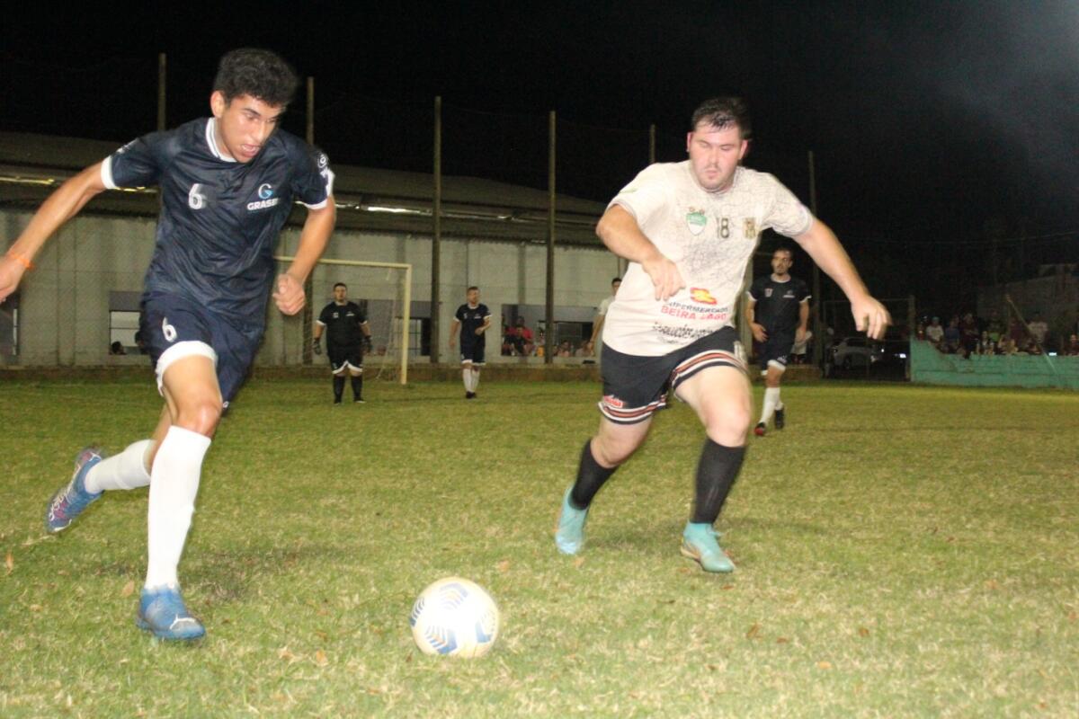 A disputa de pênaltis começou equilibrada. Até a quarta cobrança, empate por 3 a 3, com Fabinho defendendo o chute de Fabinho, e Bocão, da Grasel, mandando por cima. Na quinta batida, Carlinhos fez o seu, e na sequência Spada parou o chute de Vargas e garantiu a festa para Supermercado Beira Lago/ Turma do Rancho/ Boa Esperança.