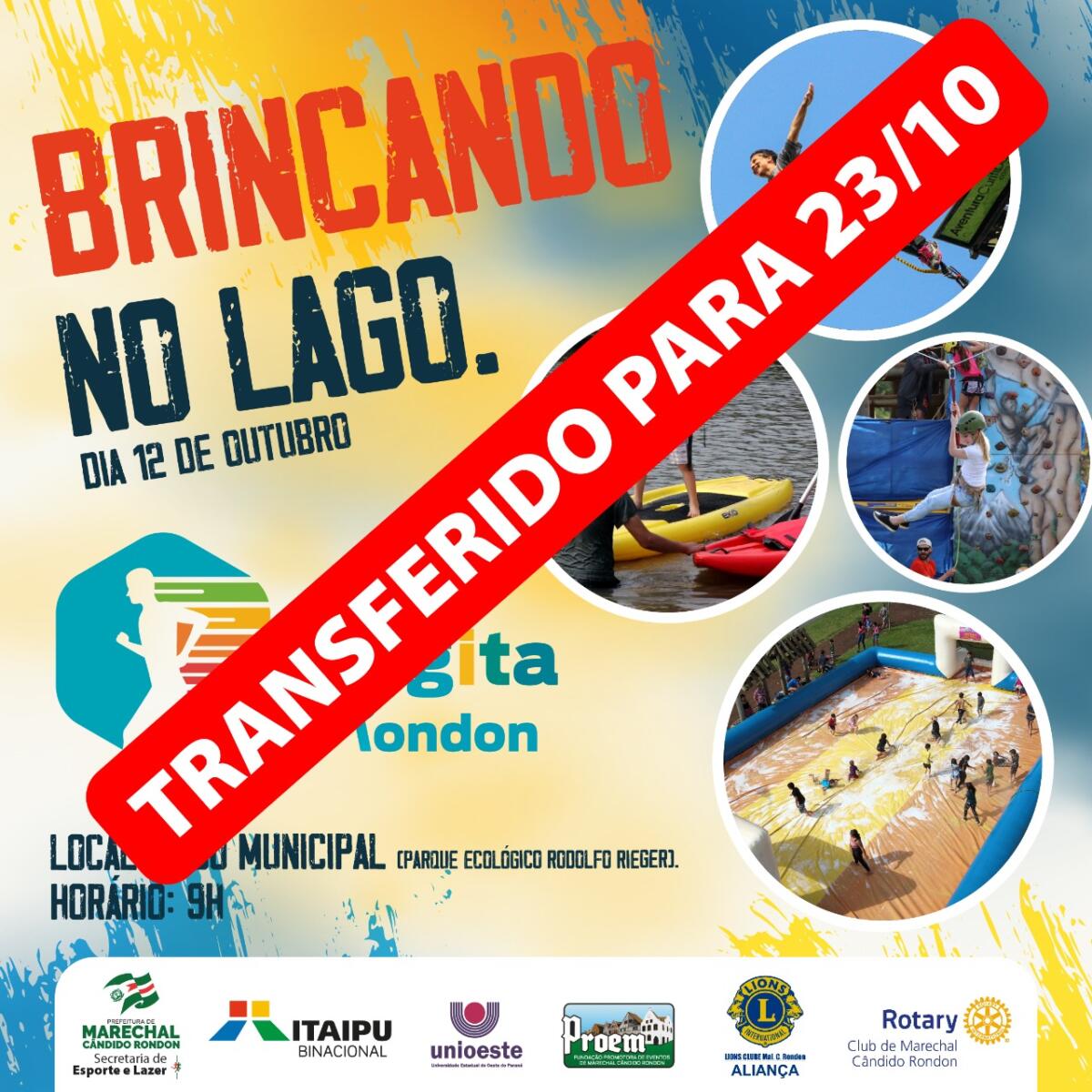 Mais uma edição do Brincando no Lago estava marcada para esta quarta-feira, Dia das Crianças (12 de outubro), no Parque Ecológico Rodolfo Rieger, em Marechal Cândido Rondon. Devido à chuva, que conforme as previsões deve continuar amanhã, o evento foi transferido para o dia 23 de outubro, um domingo.
