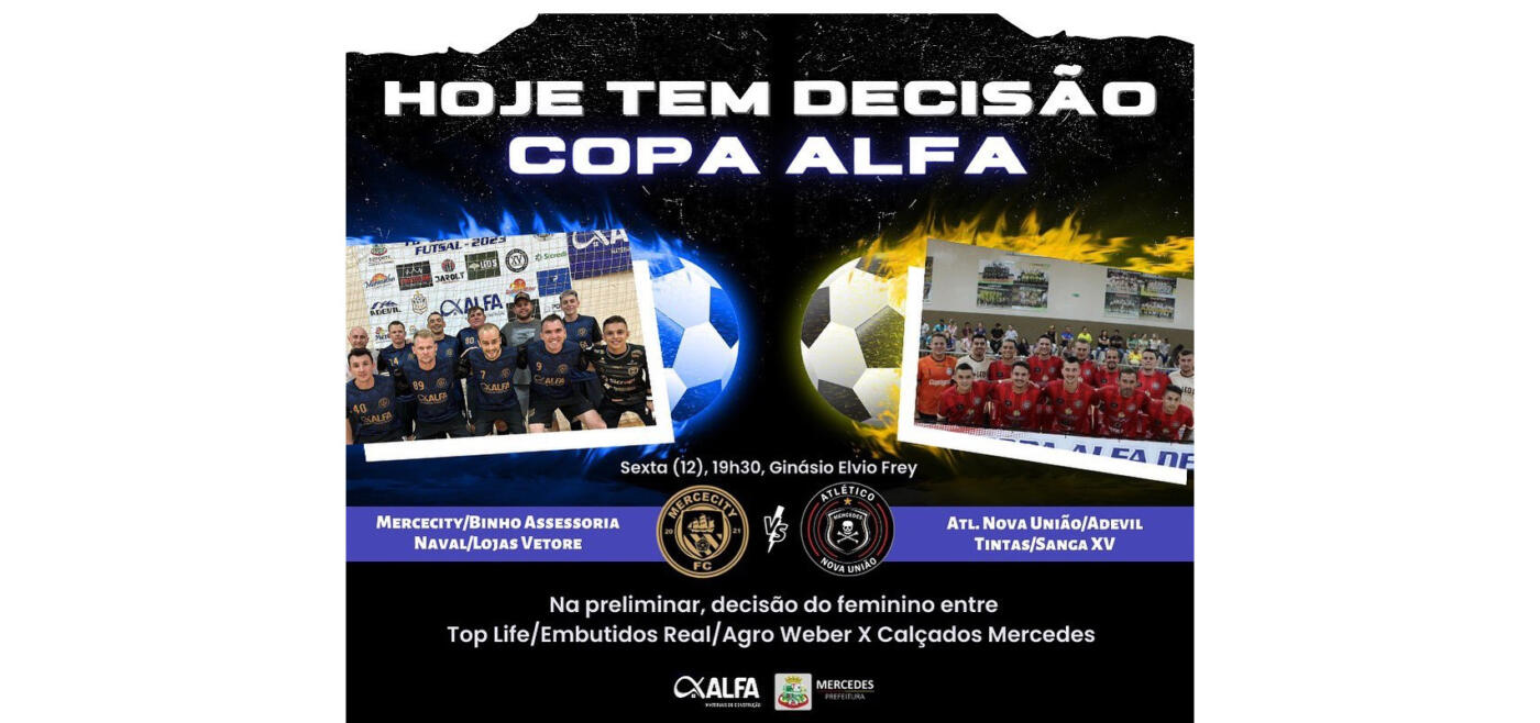 Serão conhecidos na noite desta sexta-feira (12) os campeões da Copa Alfa, o Campeonato Municipal de Futsal de Mercedes. A bola rola a partir das 19h30, no Ginásio Elvio Frey.