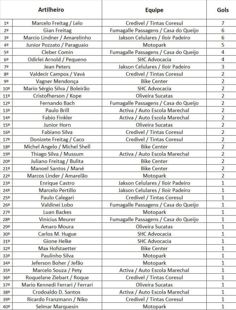 Confira abaixo a relação de gols do campeonato: