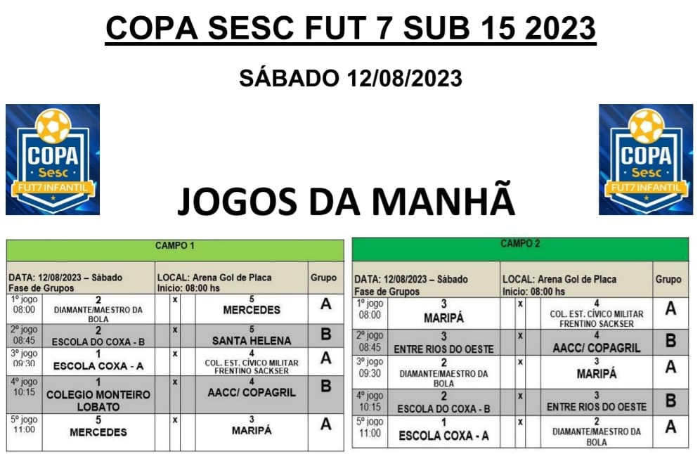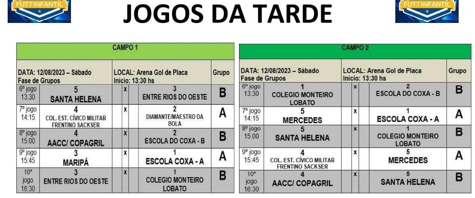 Grupo A: Escola Coxa A, Diamante do Oeste/Maestro da Bola, Maripá, Colégio Cívico-Militar Frentino Sackser e Mercedes