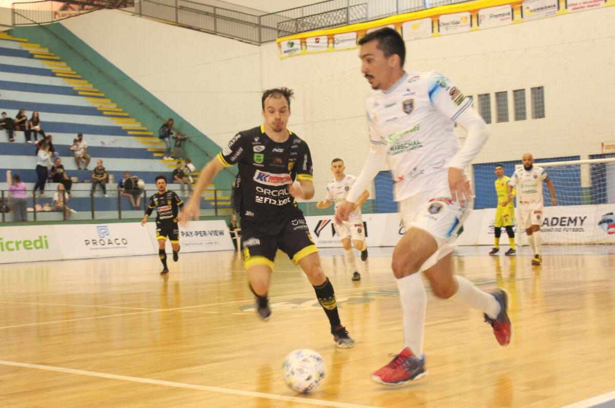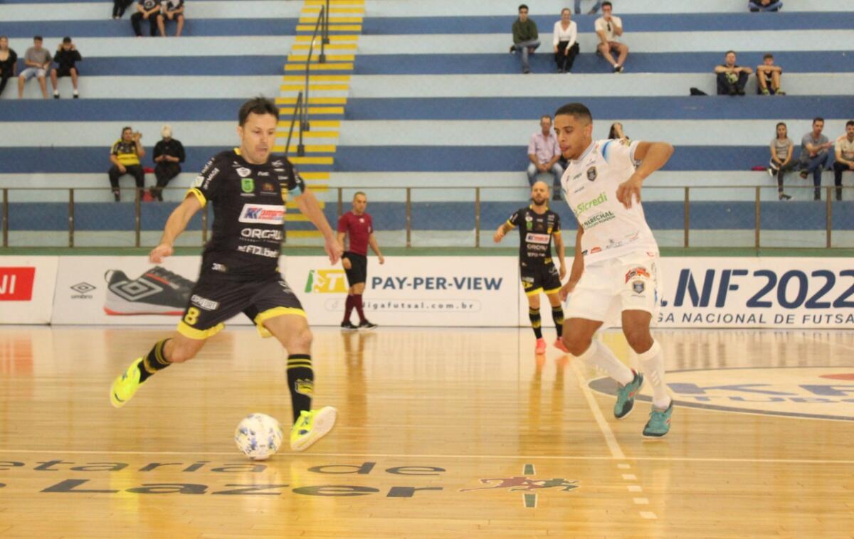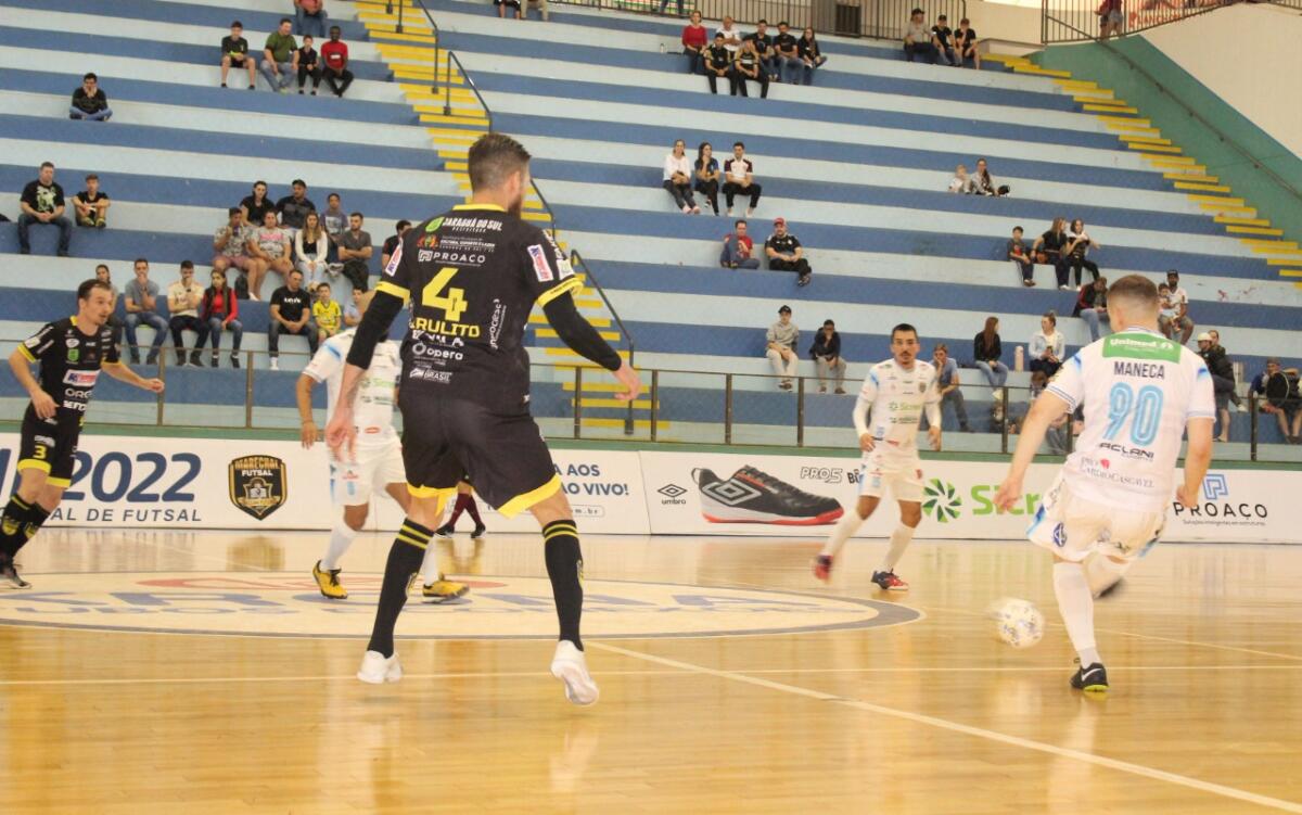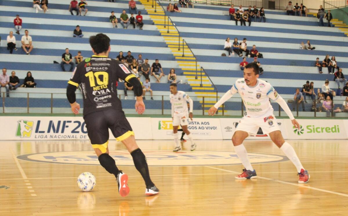Uma vitória suada, sofrida, dramática, feroz. Com a iminente eliminação batendo à porta em caso de resultado negativo, o Marechal se entregou de todas as maneiras dentro de quadra e, com grande atuação do goleiro Obina e gol salvador de Alisson Feroz, venceu o Jaraguá por 1 a 0, neste domingo (31), no Ginásio Ney Braga, e manteve viva a esperança de classificação Liga Nacional de Futsal (LNF).