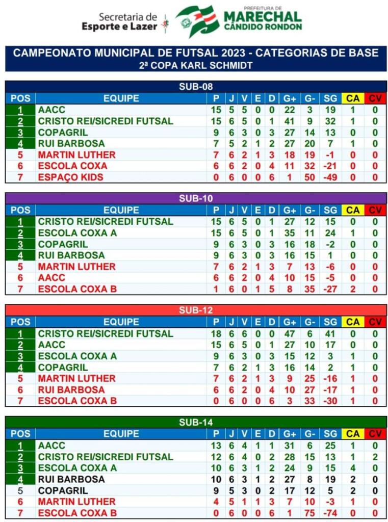 Para fechar a 1ª fase da Copa Karl Schmidt, dois jogos ainda serão disputados: Rui Barbosa x AACC, pelo sub-8, e Martin Luther x Copagril, pelo sub-14.