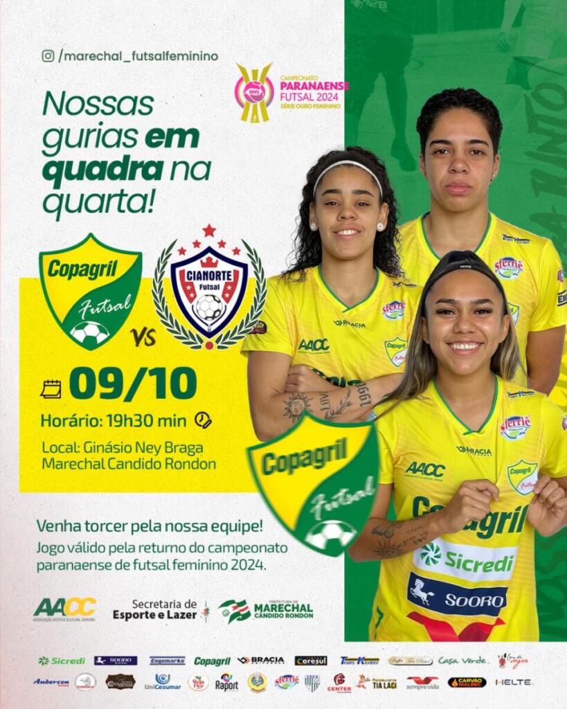 Atualmente na liderança com 19 pontos, um a mais que o Stein Cascavel e três a mais que o Londrina, a AACC Copagril/Prefeitura de Marechal Cândido Rondon irá receber o lanterna Cianorte, que ainda não pontuou, às 19h30, no ginásio Ney Braga, com entrada franca, com grandes possibilidades de assegurar a 1ª colocação e desta maneira decidir sempre em casa na fases mata-mata.
