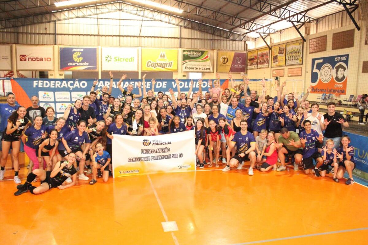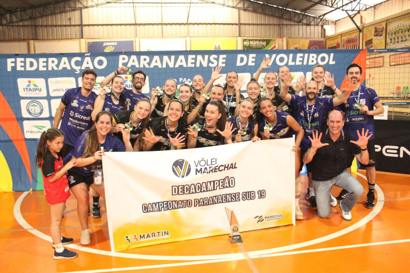 A hegemonia do Campeonato Paranaense sub-19 de Voleibol Feminino segue com o Colégio Martin Luther/Vôlei Marechal/Prefeitura de Marechal Cândido Rondon. Neste domingo (17), no ginásio do Colégio Martin Luther, as meninas rondonenses contaram com o apoio fundamental de sua torcida para superar a forte equipe da ACEL/Chopinzinho, que fez a melhor campanha da 1ª fase, em uma final dramática, por 3 sets a 2, com direito a 18/16 no tie-brake, para comemorar um dos títulos mais emocionantes de sua história.