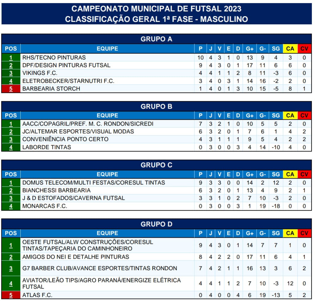 Foi encerrada na quinta-feira (10), com dois jogos no Ginásio Ney Braga, a 1ª fase do Campeonato Municipal de Futsal Masculino 2023, organizado pela Secretaria de Esportes e Lazer de Marechal Cândido Rondon.